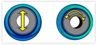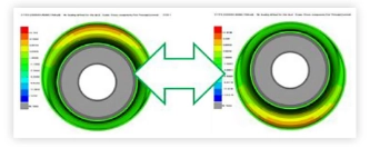 يوضح الشكل التالي نموذج العناصر المحدودة لجلبة تعليق محددة تحت حمل شعاعي ومخطط كفاف لنتائج الحساب.