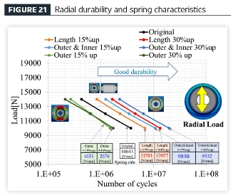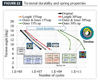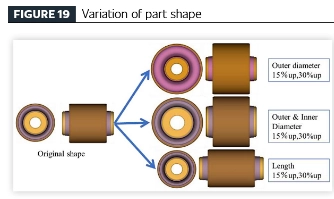 [إنشاء عملية فعالة لتصميم منتجات المركبات من خلال تقنية تحليل التعب] من خلال تطبيق تقنية تحليل التعب المقترحة للمكونات المطاطية العازلة للاهتزاز، تم إجراء دراسة حدودية على مكونات مصنوعة من نفس المادة للتحقق من العلاقة بين التباين الهندسي (حجم المطاط) وأداء المتانة. تم اشتقاق هندسة المكونات من تصميم الجزء الأصلي، مع اختلافات نموذجية تشمل: