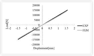 تتم مقارنة منحنى صلابة الجلبة (منحنى إزاحة القوة) بالنتائج التجريبية، مما يثبت صحة نموذج FEM المعمول به. كما يتبين من الشكل: التحليل باستخدام معلمات مفرطة المرونة التي تم تحديدها من عينات اختبار المواد يوضح الاتساق الجيد بين النتائج التجريبية والتحليلية في مخطط إزاحة الحمل.