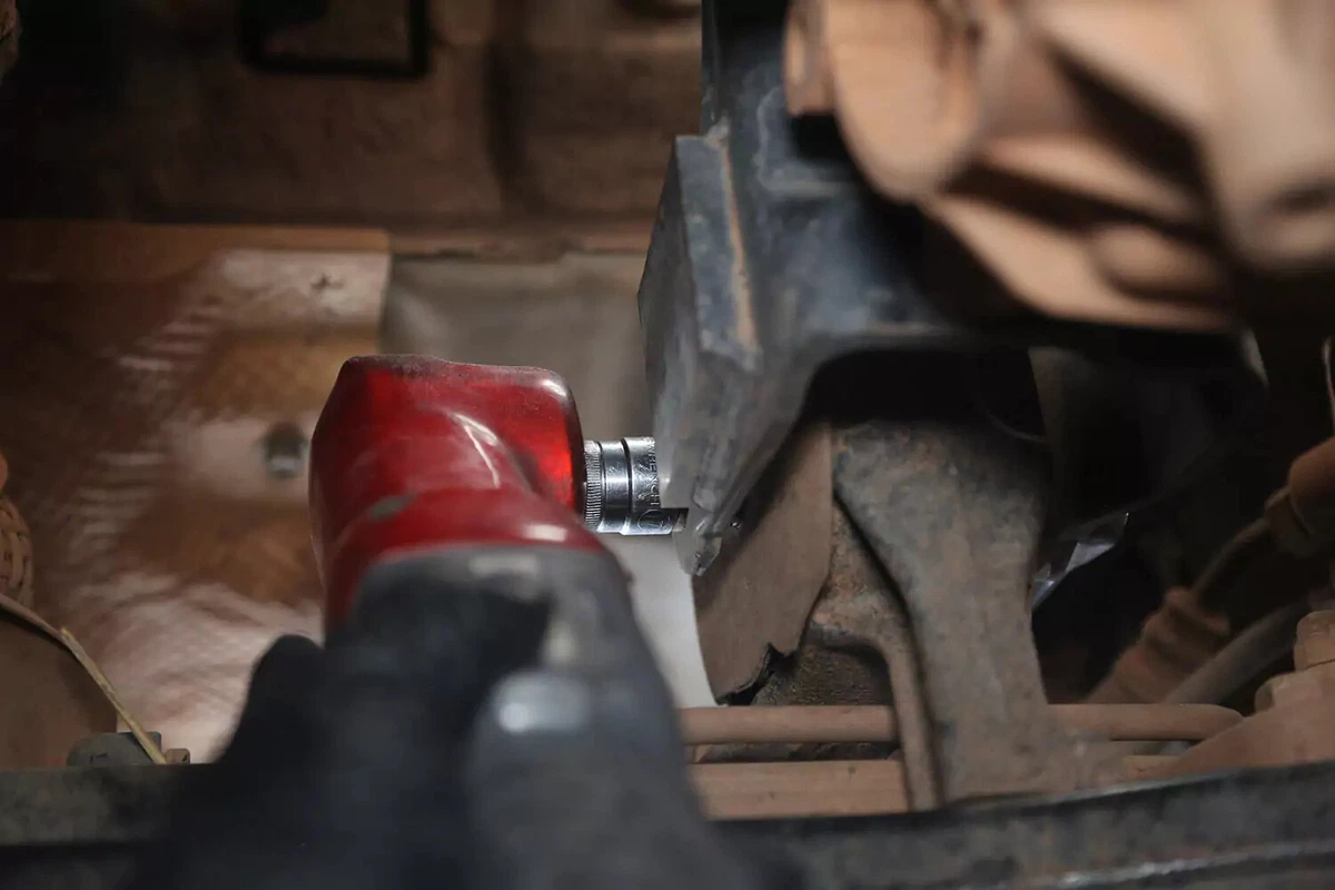 تحتوي سيارتنا التجريبية على مسمار متقاطع، والذي يمكن إزالته باستخدام مفتاح ربط من أحد الجانبين ومقبس من الجانب الآخر. قد يكون من الصعب إزالتها في الأماكن الضيقة. استخدم شريط الكسارة أو مفتاح الربط أو شريط الغشاش للحصول على الرافعة المالية المطلوبة.
